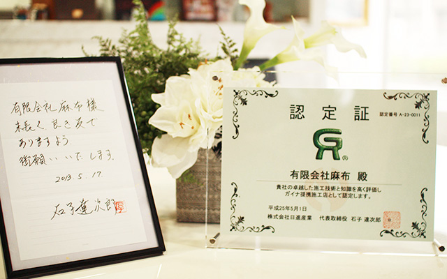 石子社長より直筆のお手紙と指定施工店認定書を頂きました!